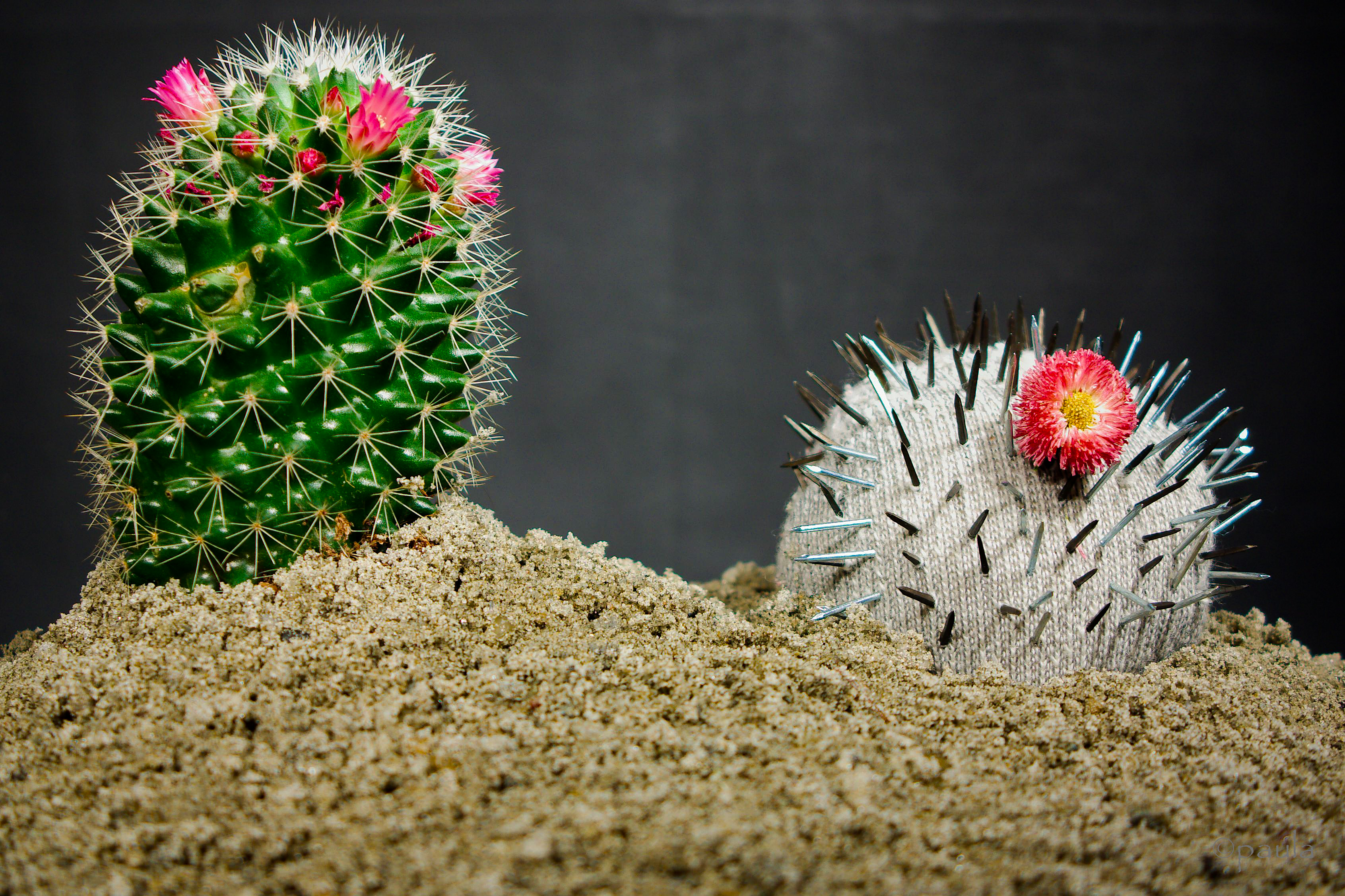 1. Cool! I love the pink pops in this photo. Did you make the white cactus out of a sock?