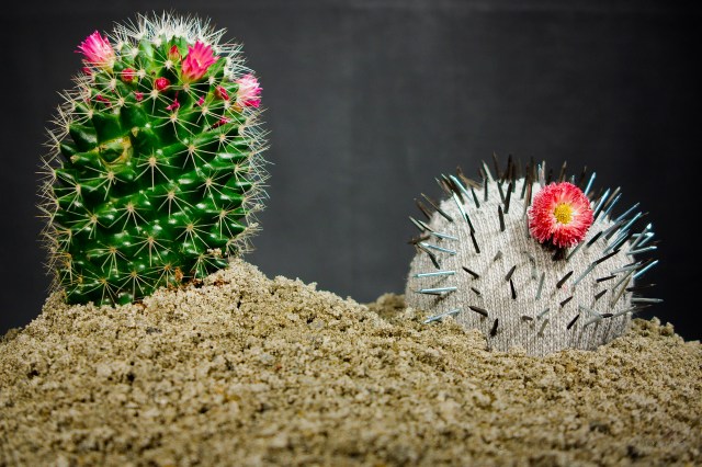 This is a cute image! Here’s what I like: The background really works because it is not distracting and is not bright. Backgrounds should be out of focus and it can be helpful if you have a similar color as something in you main subject. The neutral color here works. The front lighting is very good. The two images have interesting detail. Cropping is good, especially the front and sides. My only suggestion would be to allow a little more space at the top between the green catus and the top frame. Or, before you click the shutter button, be sure to look around the viewfinder and pay attention if any subject matter is merging into the frame or nearly touching it. It so, simply widen the shoot slightly. There are circumstances when it is ok to have parts of your image merging into the frame, but that’s another blog article (-: