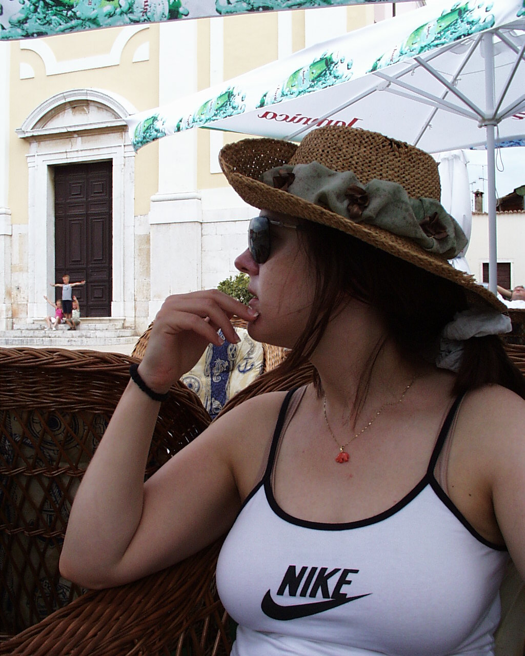 The reason I commented on the last one was that the first two are nice shots of the two of you, possibly on vacation?, but the last, you and your “lost in thought” look, and especially the children in the background, make an outstanding, story telling photo.
